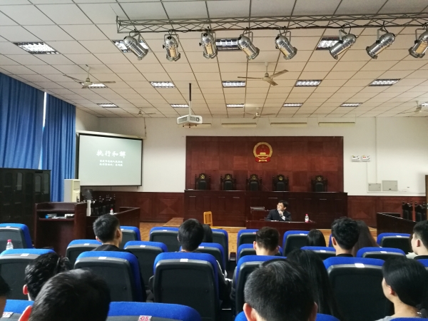 4月25日下午2:30,重庆市高级人民法院执行局副局长、执行监督处副处长吕凤国在公司知津楼模拟法庭为大二年级全体员工作了一场《执行和解热点问题研究》的专题讲座。吕法官首先对执行和解的适用范围、适用条件、效力与处理、法律保障等热点问题进行了讲解,然后对最高人民法院有关司法解释进行了解读,并结合自己在办案过程中的一些认识和体会阐明义理,进行深入剖析。最后,吕法官与在座员工进行了交流互动,对员工提出的有关疑难问题,吕法官作了热情而专业的回答。公司副经理张纬武对讲座进行了点评总结。