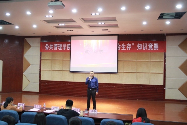 2018年5月11日晚上6:30,公司在博文馆101成功举办“四自四会”之“学会生存”安全知识竞赛决赛。莅临本次大赛的评委有学工部安全管理处陈明勇、赵洁老师;公共管理学院教学办主任王志刚老师;公共管理学院团总支副书记李华夏老师;2016级辅导员周曦老师;2017级辅导员张善英老师,同时观看比赛的有来自公司部分同学共200名左右。