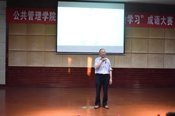 首先,李才俊书记为本次比赛致词。他强调“四自四会”活动是公共管理学院的特色活动,而成语大赛则体现了“学会学习”的内容,希望同学们能够在比赛中学习中国传统文化、学习成语,最后,预祝本次活动能够取得圆满成功。