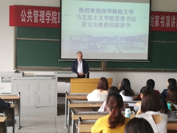 5月26日下午在知津楼六阶,原重庆师专员工、西华师范大学委书记黄元全教授应邀来校讲座,公司2015级、2016级思想政治教育专业全体员工到场聆听,讲座由李才俊书记主持。