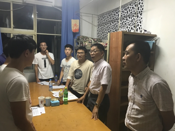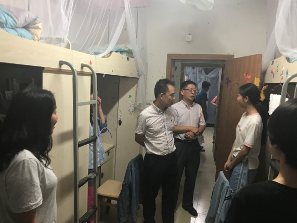 2018年9月9日晚7:30,学院全体党政领导、教学办主任、学工办副主任、新生辅导员、一行5人走访慰问了2018级新同学。