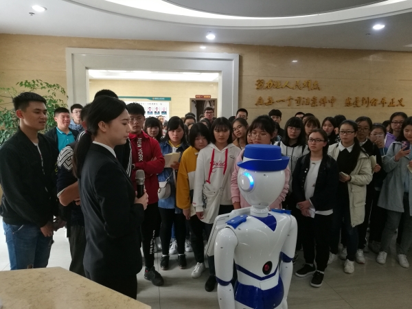 同学们抵达荣昌法院后,该法院副经理魏东、政治处主任肖慧杰对同学们的到来表示了热忱的欢迎。在讲解人员的引导下,同学们首先在展板前观摩学习了该法院多元化纠纷解决机制“荣昌模式”的组织结构、诉非对接中心流程、综合调处三级联调流程。紧接着,大家来到“诉非对接中心”,参观了多个布局风格各异、极富人性化的调处室。在该中心的大厅内,同学们对集导诉、咨询等智能服务功能为一体的智能机器人产生了浓厚的兴趣,有的同学当场进行了咨询体验。随后,同学们由一楼往上,陆续参观了餐厅、休息室、审判庭、电影厅、“理念走廊”、院史馆等,在电影厅观看了该法院自己拍摄的微电影《春苗》。