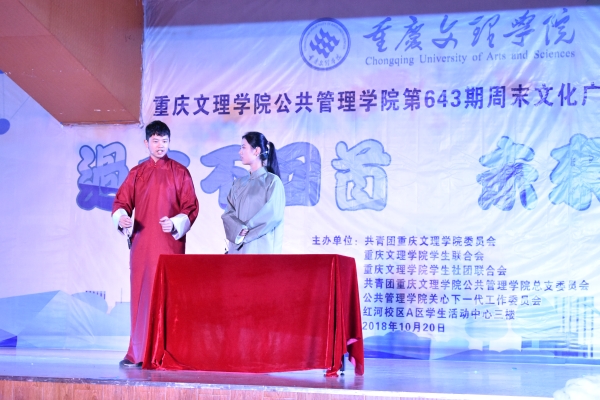 10月20日晚上七点,ag九游会公共管理学院第643期周末文化广场暨迎新晚会在员工活动中心三楼举行。出席本次活动的嘉宾有学院全体党政领导,以及教研室主任、年级辅导员和部分任课教师以及大一、大二全体同学参与。