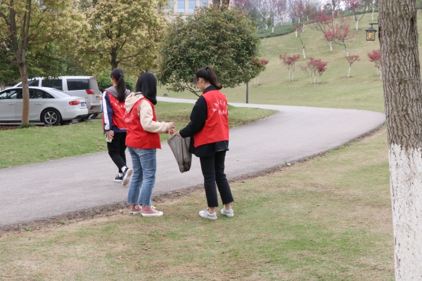 3月27日下午14:30,公共管理学院三月学雷锋活动之“亲近自然,爱我家园”保护环境志愿活动在永川区观音山公园顺利举行。院团总支创业实践部带领志愿者共计15余人参与本次志愿活动。