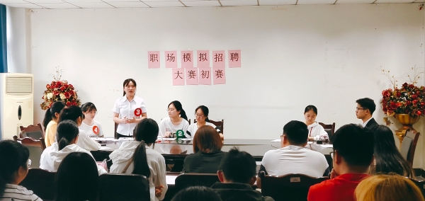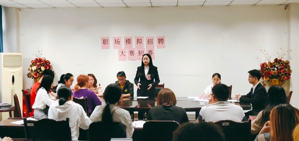2019年4月10日上午12:30,公司公共管理学院在知津楼C204举办了职场模拟招聘大赛的初赛。此次比赛是第十八届老员工“畅想文理”文化艺术节的子项目。担任本次比赛的评委有:教育学院团总支员工副书记王李、教育学院团总支员工副书记黎海霞、电子电气工程学院团总支员工副书记梁国昌、电子电气工程学院员工会副主席杨莲、青年志愿者协会副会长胡贤丹,共计21名选手参赛,王滔担任本次比赛的主持人。