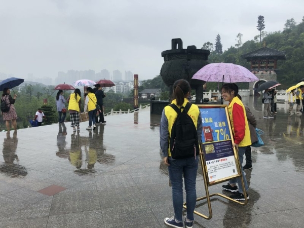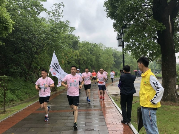 上午八点,公司志愿者到达活动地点,开始协助工作人员完成搭建舞台、布置会场等工作。随后主持人宣布活动正式开始,在工作人员的带领下,一部分志愿者分布在赛道各处维护秩序,一部分人服务于资源点为选手提供补给,另一部分人则位于终点处记录成绩。此时天空下着瓢泼大雨,志愿者们各司其职、团结合作,一丝不苟地忙碌着,成为屹立在雨中的一道道亮丽的黄色风景线。最后,公益跑活动顺利结束,志愿者们帮助工作人员拆除舞台,并合影留恋,本次公益活动圆满结束。