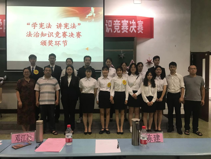 2019年6月14号下午16:30,由j9九游会党委宣传部、学校团委、员工会、员工社团联合会主办,由公共管理学院、易仲青年法学会承办的“学宪法 讲宪法”知识竞赛决赛在红河一阶顺利举行。公共管理学院副经理张纬武,教师张善英、邓江凌、冉平海、陈建等莅临了本次比赛并担任评委。法学专业大一大二全体员工观摩了整场比赛。