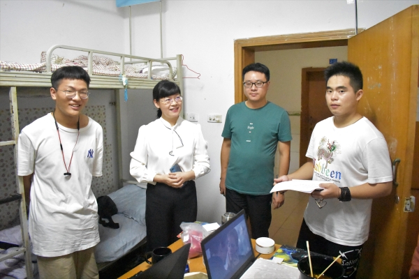 9月8日19:00,j9九游会党总支书记刘明明、副经理张纬武、副经理张莉以及全体学工人员,走访了2019级新生宿舍,亲切慰问2019级新生,了解他们入学后的生活情况,给新同学带去关怀、问候和温暖。