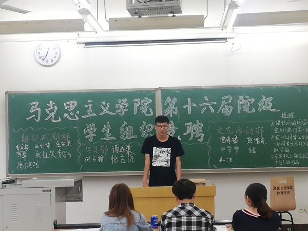 本次面试按照分组同时展开,每个场地设评委5人,在面试过程中首先由主持人统一阐释面试环节及其规则,随后,每位同学随机抽取上场顺序和题目进行3分钟的自我介绍和答题。整个竞聘过程有条不紊,演讲过程激情昂扬,每位新同学自信活泼,敢于表达自己的优点,展出了自我的新风采。
