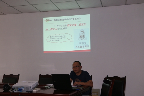 首先全体党员观看了“不忘初心,牢记使命”的主题视频,深刻了解到中国共产党人在革命初期的艰辛和不易。接着由邓江凌书记以《不忘育人初心 牢记教师使命争做新时代有新作为的新教师》的题目上了一堂生动鲜活的党课。他指出了教师在教育事业中的重要地位,强调了党对教育事业提出的新要求,希望大家要不忘育人初心,牢记教师使命,争做新时代有新作为的新教师。在场的党员教师们认真聆听并做好了学习笔记。