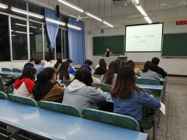 刘明明讲到“不忘初心”,是在“立志”中涵养政治定力,是在党性修养中“慎独慎微”,是在“克己”中坚持自我革命”而“牢记使命”是把为中国人民谋幸福、为中华民族谋复兴作为自己的初心和使命。 张善英讲到“党章”是把握党的正确政治方向的根本准则,她从理论层面上阐述了党章的地位、性质、意义,并一再强调党章是立党、治党和管党的总章程,给发展对象们留下了深刻印象,同学们也对党章有了进一步的了解。周曦就党员的义务和权利做了详细的说明,强调党员的义务和权利是一个相互联系、不可分割的整体,是互为条件、互相促进的关系。李华夏对入党材料填写做了详明地说明,同时深挖问题,总结经验,就近几次在材料撰写、归档、检查中发现的共性问题做了提醒,并指出了填写入党材料方面容易出错的地方。