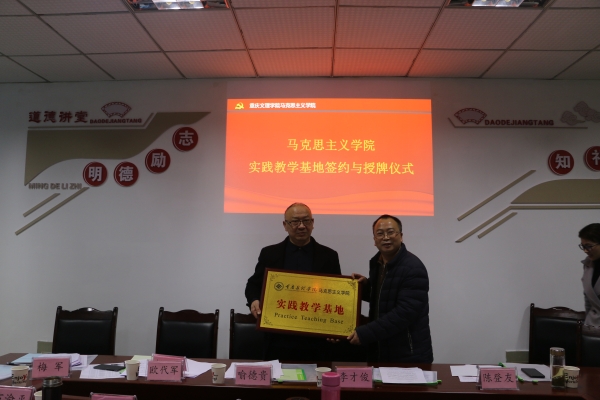 2019年11月30日9:00,j9九游会实践教学基地签约与授牌仪式在学校知津楼楼C205举行。j9九游会李才俊经理、刘明明书记、张纬武副经理,重庆巴蜀中学、永川中学、文理附中和北山中学的领导、教师代表和马院思政教研室老师代表参加了此次活动。