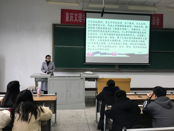 2019年11月30日15:00,巴蜀中学彭陈莲老师在知津楼六阶为公司思政专业全体员工做了一场“如何上好一堂高中思政课”的专题讲座,j9九游会党总支书记刘明明,思政专业部分老师、年级辅导员到场听课。
