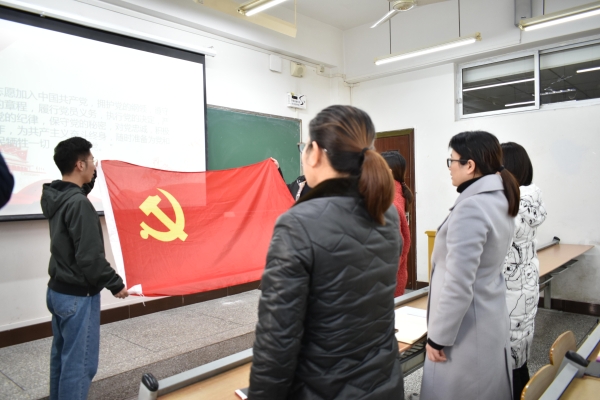 2019年12月5日17:10,本学期公司新发展的员工党员入党宣誓仪式在知津楼A301举行。莅临本次仪式的有j9九游会党总支书记刘明明,员工支部三围支部书记以及22名预备党员参与本仪式。