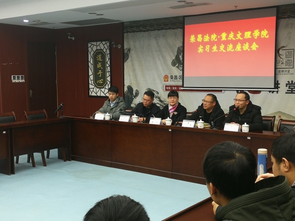 1月3日下午,公司张莉副经理与公司法学教研室室主任邓江凌、法学任课教师陈建来到重庆市荣昌区人民法院,看望公司法学专业实习生,并与法院领导就实习工作进行了交流。荣昌区人民法院经理向前、政治处主任曹文全热情接待了我方人员。公司法学专业30名在此集中实习员工参加了本次交流会。
