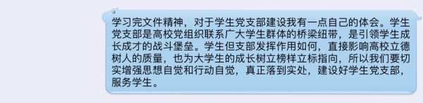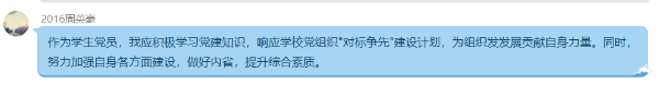 随后支部书记教导各员工党员要加强党的基层组织建设,认真学习党章,严格遵守党章。必须始终牢记入党誓词,以焦裕禄、杨善洲等模范人物为榜样,自觉讲党性、重品行,以实际行动做表率。要积极配合组织的工作,不放松、不懈怠,要做一名“信念坚定、为民服务、清正廉洁、勤政务实”的好党员好干部。支部其他同志也积极的发言讨论,同志们非常赞同党中央从严治党、杜绝形式主义等方针政策,同时对如何加强基层党支部建设谏言献策。