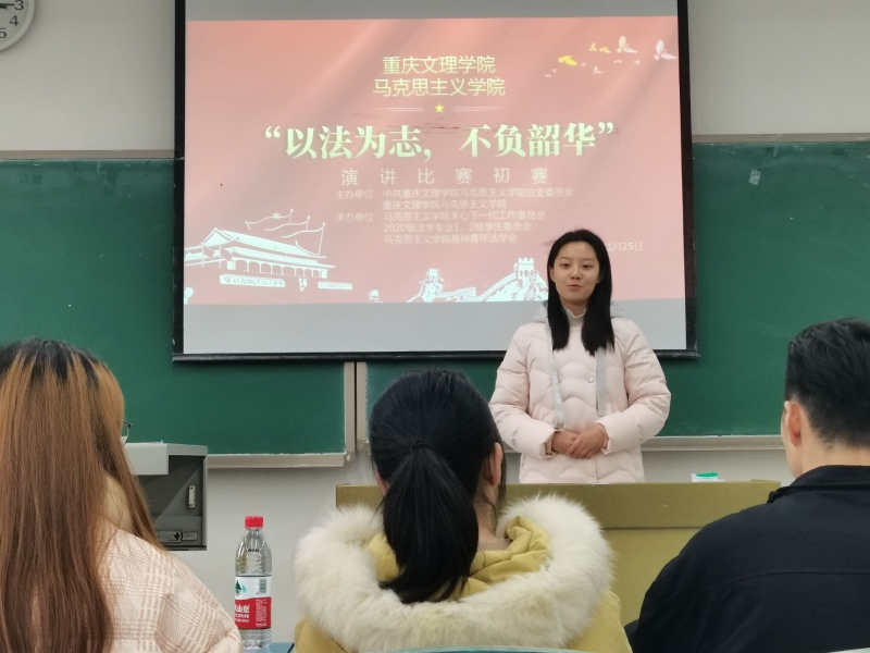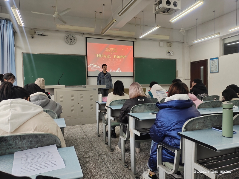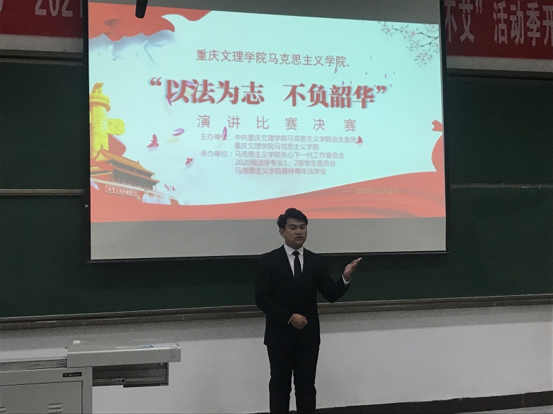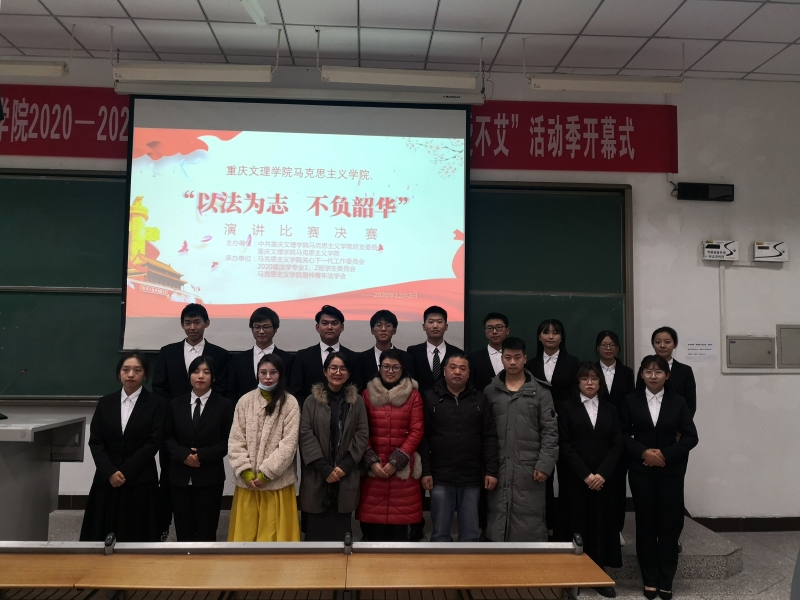2020年12月2日下午14:30,j9九游会2020级法学“以法为志,不负韶华”演讲比赛于红河八阶教室顺利举行。j9九游会党总支书记刘明明、教师丁锐华、冉平海、冉雪芳、陈建担任了此次决赛的评委,2020级法学专业全体员工观看比赛。