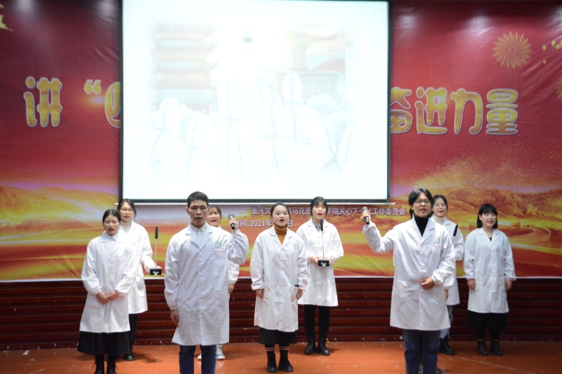 宣讲活动中,同学们围绕党史、新中国史、改革开放史和社会主义发展史,以“英雄”“复兴”“创新”“信念”为主线分别进行《青春的力量——致敬塞罕坝人》《弘扬长征精神,争做出彩国人》《抗美援朝七十周年——向英雄致敬》《在烈火中永生》《最美逆行者》《信仰的力量》等红色故事的宣讲,通过穿插情景剧、默剧、视频讲解、演讲、朗诵和歌唱等形式动情地讲述了红军长征、抗美援朝战争、红岩和抗疫等先进人物感人事迹的精神内涵。