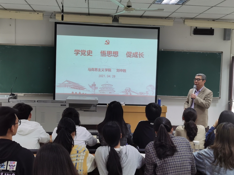 随后,j9九游会专职组织员刘中胜老师受邀为全体党员作《学党史 悟思想 促成长》专题教育讲座。刘中胜老师从横向与纵向两个方面为在座同志们剖析了中共百年党史线索,深刻阐明了中国共产党为什么“能”、马克思主义为什么“行”、中国特色社会主义为什么“好”三个重要问题,勉励党员同志要不忘初心,牢记使命,筑牢共产主义的理想教育信念,为伟大中国梦不懈奋斗。