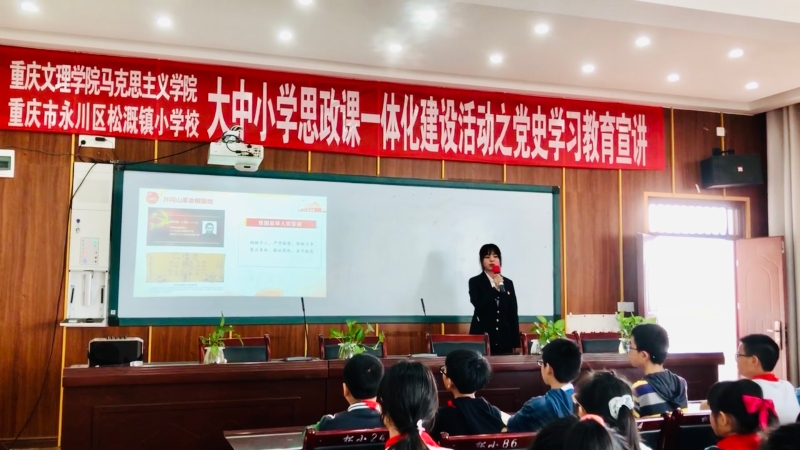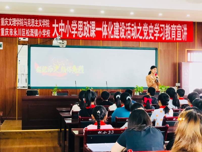 为贯彻习近平总书记在党史学习教育动员大会上的重要讲话精神,献礼中国共产党百年华诞,同时进一步探索大中小思政课一体化建设路径,打造“行走的思政课堂”。2021年5月10日12:50,公司“四史”宣讲团六名成员走进永川区松溉小学开展党史学习教育宣讲活动。