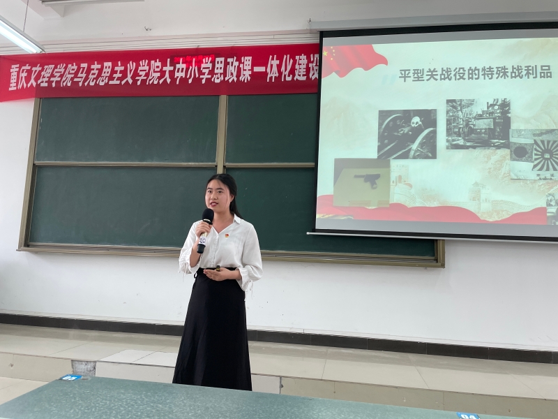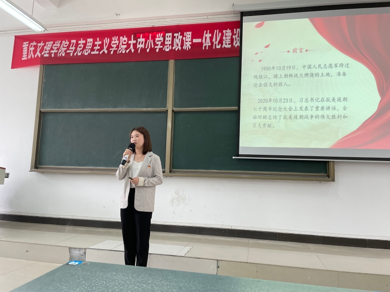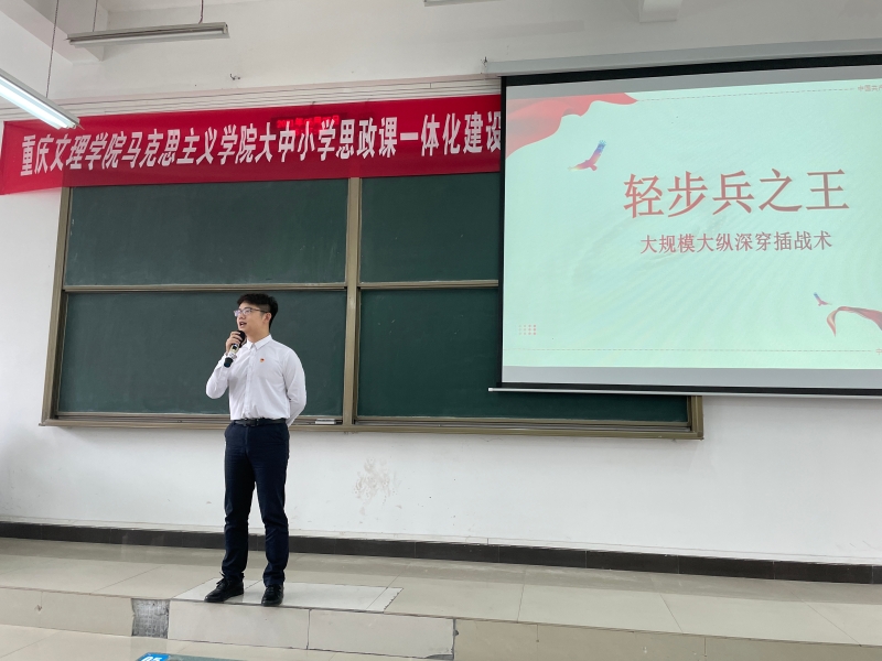重庆城市职业学院校团委曹维老师首先对公司宣讲团一行的到来表示热烈的欢迎,并为在座师生介绍了开展本次宣讲的背景和流程。随后,七位宣讲团成员先后上台讲述了“南昌起义”“长征”“平型关大捷”“渡江战役”“抗美援朝”“铁原阻击战”“航空报国精神”。一个个感人的红色故事,一次次经典的革命战役,一张张珍贵的历史照片,宣讲团成员们声情并茂,生动地讲述了中国共产党波澜壮阔而又艰难曲折的伟大征程,激励同学们坚定理想信念,强化使命担当,引起了现场同学们的共鸣,不时响起阵阵掌声。最后,曹维总结到开展党史学习教育的重要意义,号召全体同学要忆苦思甜,珍惜现在的和平时光,珍惜党和国家为我们争取来的美好生活,要努力学习,做一个建功新时代的奋斗者。