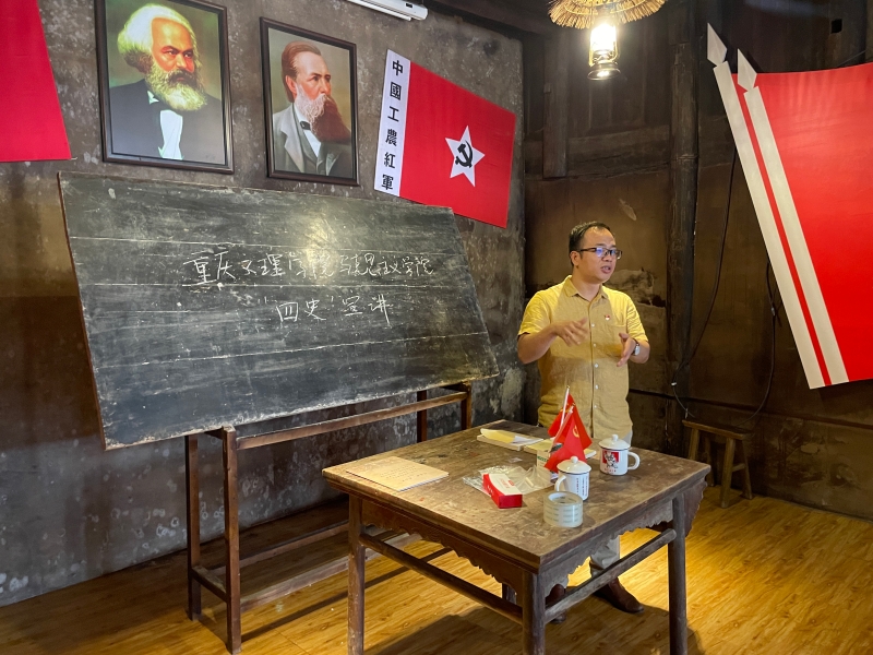 师生一行达到红军街,先后学习了军服、军旗的的演变历程,参观了保留完好的红军街历史建筑,由衷的为中国共产党百年历程发至内心的感动,为生活在如此美好的新时代而感到自豪。在传习所,镇长陈飞宇为师生上了一场生动的“微党课”,刘明明、张苏强、李华夏先后上台分享了学习体会,员工代表现场朗诵了毛泽东的诗词。