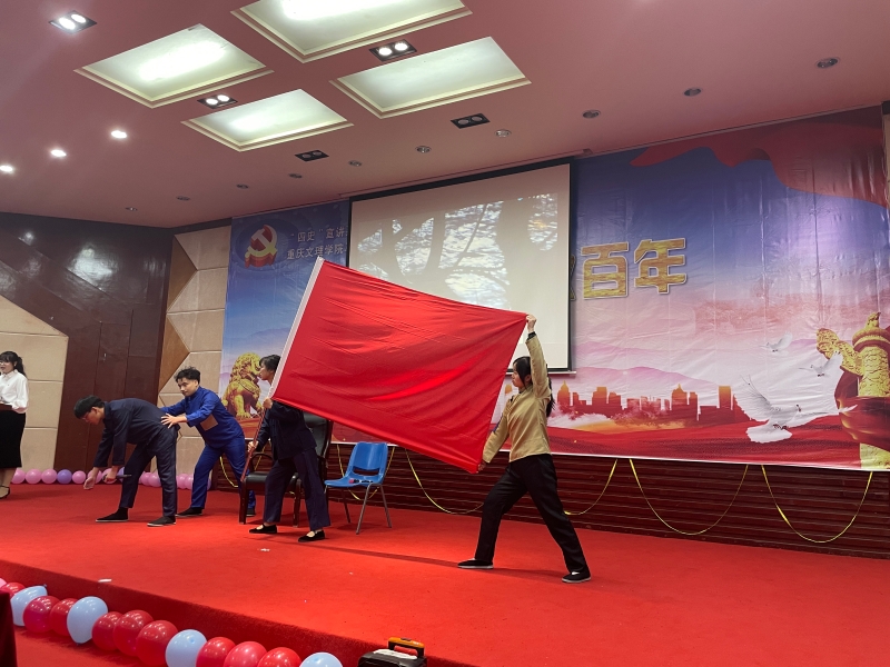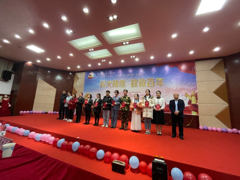 公司青年老师与十组同学通过PPT讲解、朗诵、快板、情景剧表演等形式再现“焦裕禄”“南昌起义”“小岗村的故事”“李大钊”“一张留言条——80年前军民鱼水情”“时代楷模——王红旭”等生动故事,展现了不同时期共产党人的担当和气节,让师生们深受教育和感动。在最后环节,本学期新发展党员代表进行了入党宣誓,在场所有党员一起重温入党誓词。