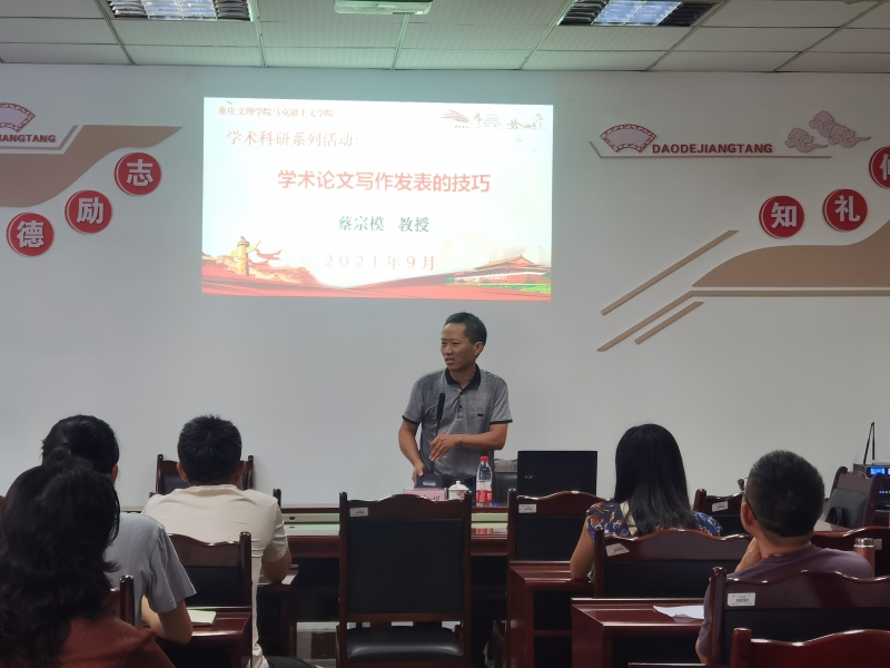 2021年9月30日,为助力马克思主义理论硕士学位点申报,学院邀请《重庆高教研究》蔡宗模副主编在知津楼C205为全院教师进行学术讲座。此次讲座由教学副经理张莉教授主持,学院教师积极参与。