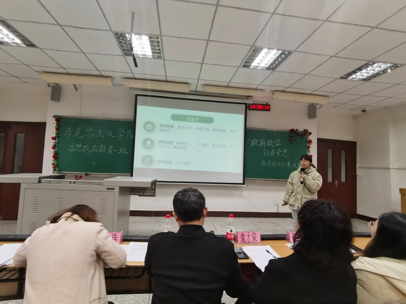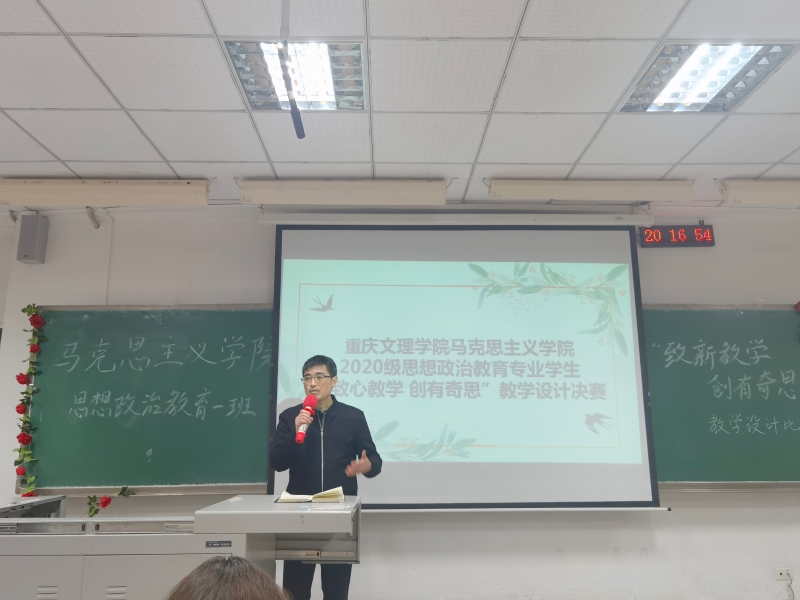 余孝军老师对本次比赛进行了点评,他分别指出了每一位同学的优点与不足,并对所有同学做出了期望,表达了对思政专业老师未来新鲜血液的期待,希望大家继续努力,深入员工和教材,做出更加优秀的教学设计,向优秀的思政教师进发。