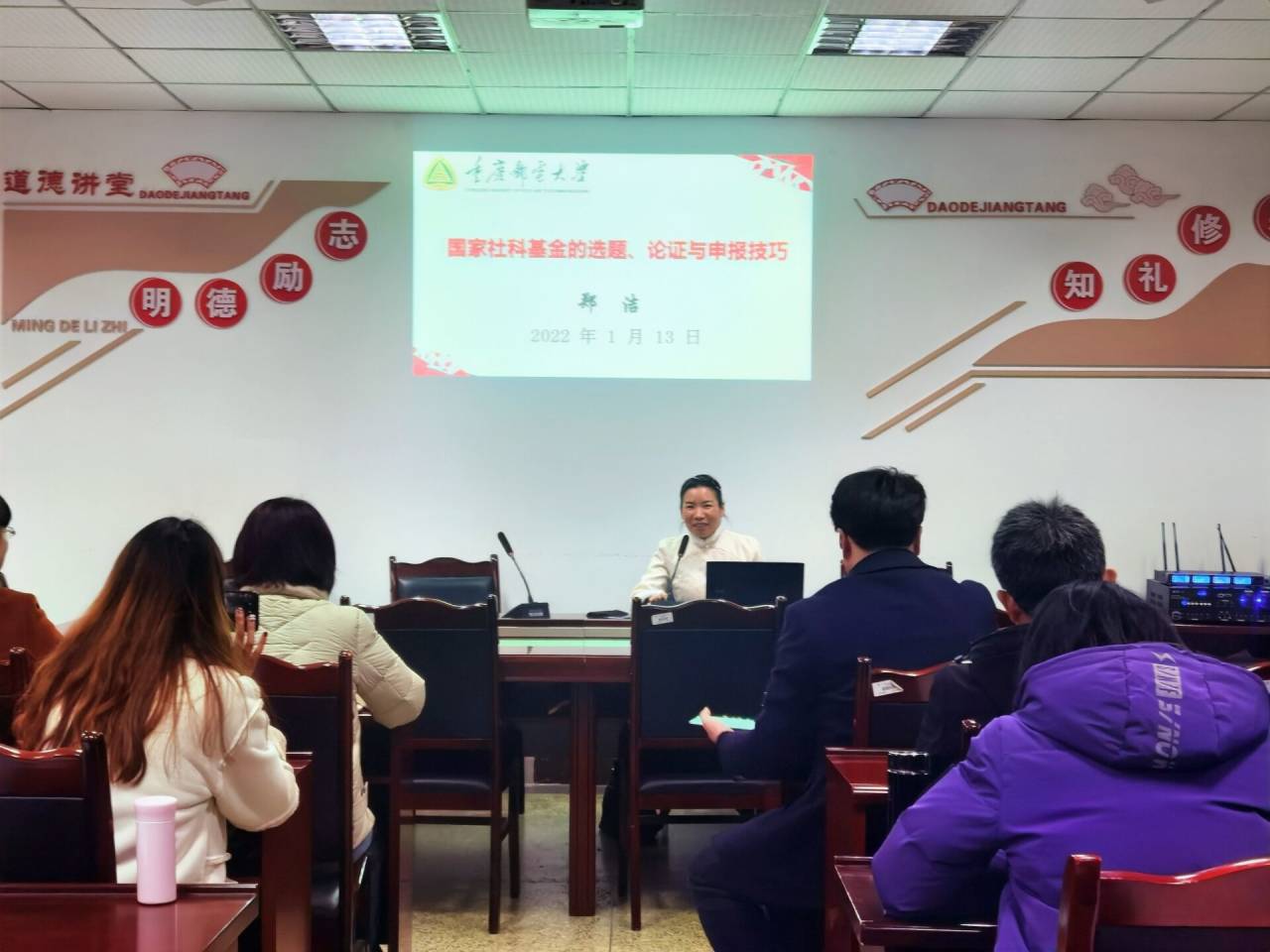 为推进公司国家社科基金持续向好,助力马克思主义理论学科发展,1月13日下午,公司邀请重庆邮电大学j9九游会副经理郑洁教授进行经验分享。本次会议由胡守敏经理主持,张莉副经理总结。