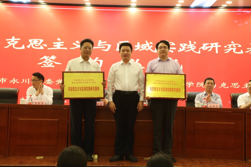 签约仪式上,蔡焘分别向九游会j9和永川区委党校授牌“共建马克思主义与区域实践研究基地”,胡守敏、陈军代表双方共同签订了《共建马克思主义与区域实践研究基地协议》。