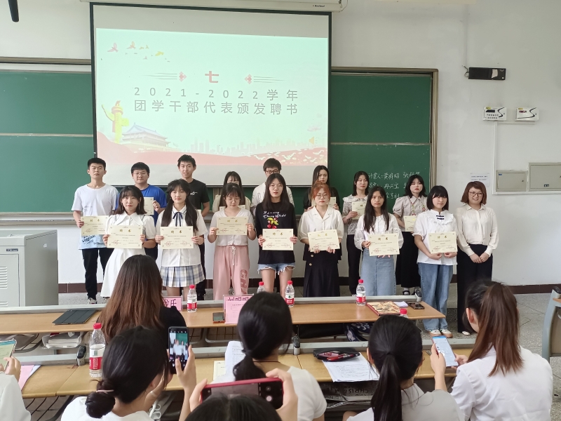 刘明明为2021-2022学年团学干部代表颁发了聘书,她对此次本次新当选的主席团成员和部长表示祝贺,希望同学们在以后工作中要坚定目标、知行合一、勇于担当,同时对公司团学组织在下一学年的重点工作做了相关部署。