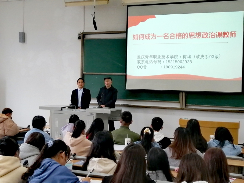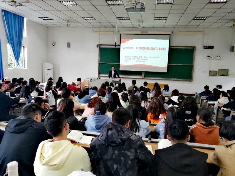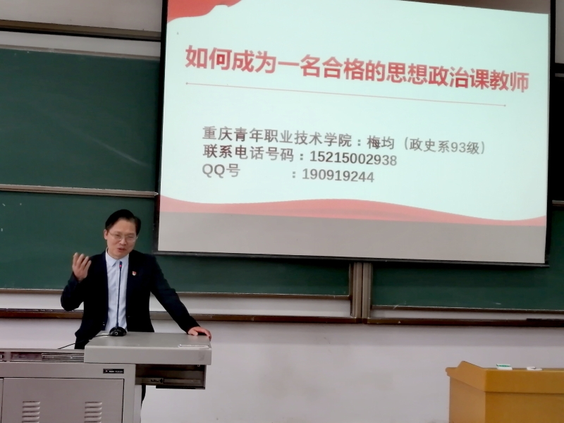 2020年10月16日14:30,公司邀请重庆青年职业技术学院梅均老师在红河八阶为思政专业全体同学开展了“如何成为一名合格的思想政治课教师”的专题讲座,并为同学们上了一堂“重庆谈判的故事”的精彩展示课。