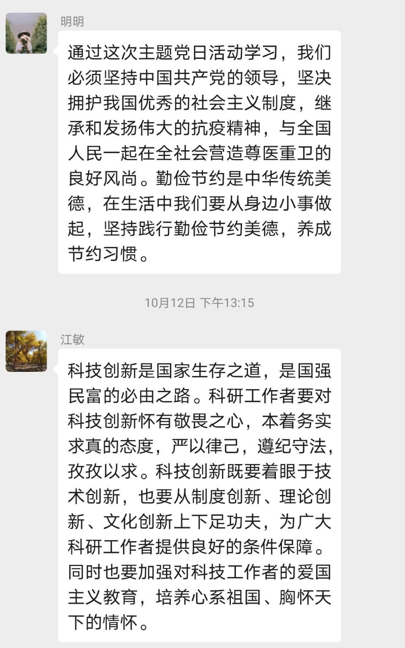 9月30日下午3:30-5:00,公司教工党支部在知津楼C205会议室举行了9月教职工政治理论学习和主题党日活动。支部党员认真学习了习近平总书记在全国抗击新冠肺炎疫情表彰大会上的讲话精神、在科学家座谈会上的讲话精神、在2020年教师节的重要寄语精神、在教育文化卫生体育领域专家代表座谈会上的讲话精神。支部书记邓江凌主持了本次会议,支部全体党员与会并进行了讨论。会后,同志们还在教工支部微信群里纷纷留言,发表学习心得体会。