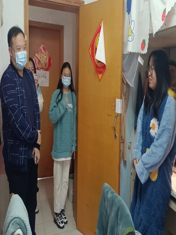 此次走访过程覆盖了学院各宿舍约47间,走访过程中,老师们叮嘱同学们要时刻关注疫情变化,做好必要防护;按时完成晨午晚检打卡,如有身体不适,一定要及时上报;积极配合学校疫情防控工作,主动进行核酸检测,落实防控措施;注意宿舍卫生,勤通风、勤消毒;同时对同学们疫情期间的线上学习生活提出了一系列的建议,希望同学们在疫情封校期间保证身心健康,保持积极向上的状态,认真学习,充实地度过疫情防控期间的校园文化生活。