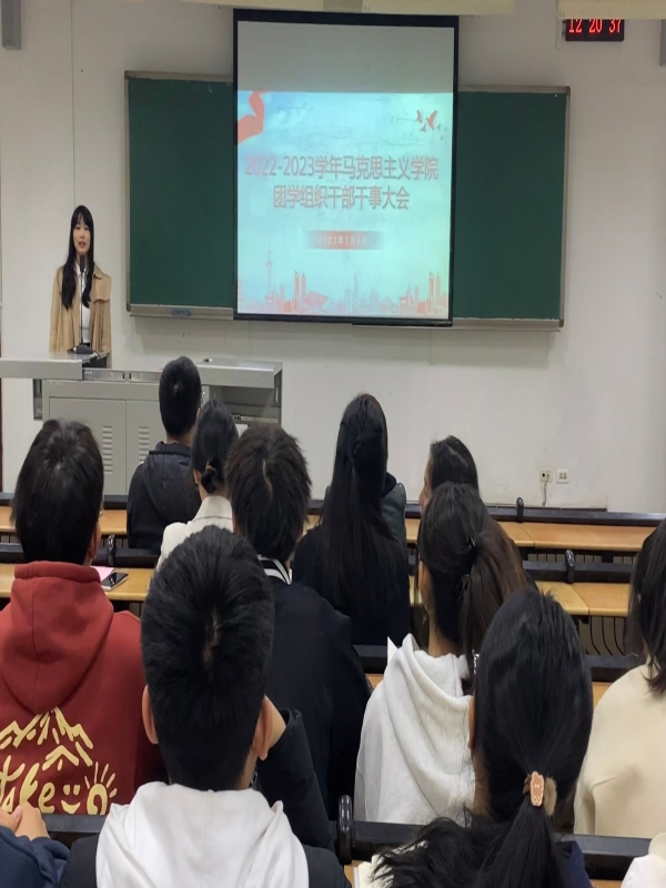 2023年3月6日12:20,公司2022-2023学年团学组织第一次全体干部干事大会在知津楼D203成功举行,学院团总支书记李华夏、2021级辅导员张善英以及全体干部干事参加本次会议。