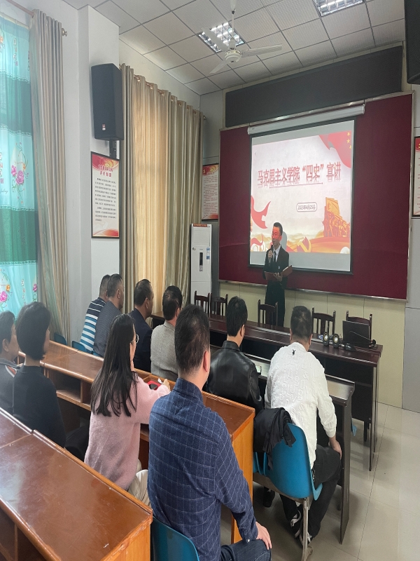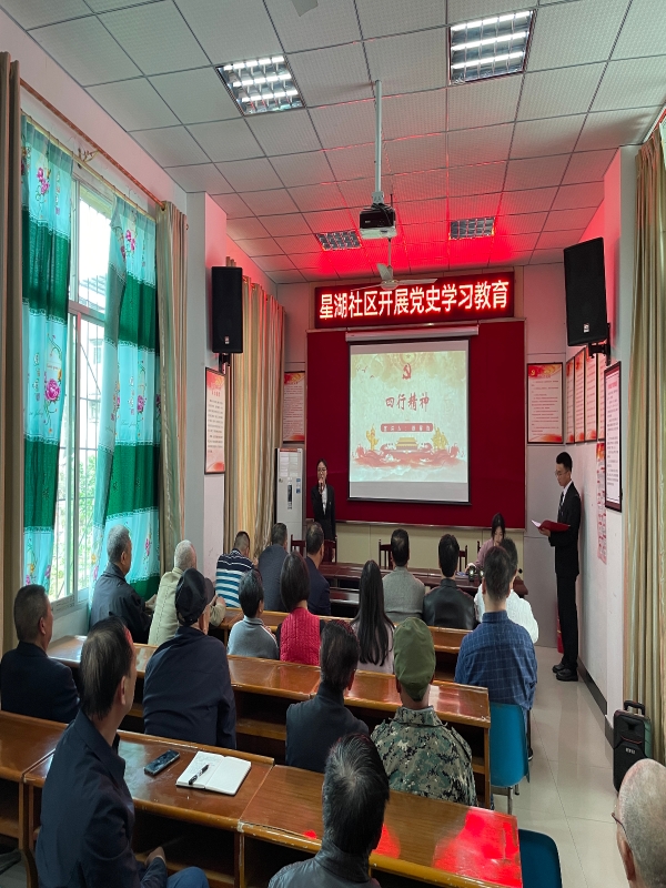 为深入学习贯彻习近平新时代中国特色社会主义思想,持续打造“行走的思政课堂”,2023年4月25日15:00,公司“四史”宣讲团九名成员在指导老师李华夏、宋亦薪带领下走进永川区卫星湖街道办事处社区居委会开展“四史”宣讲,社区部分党员干部参与观看。