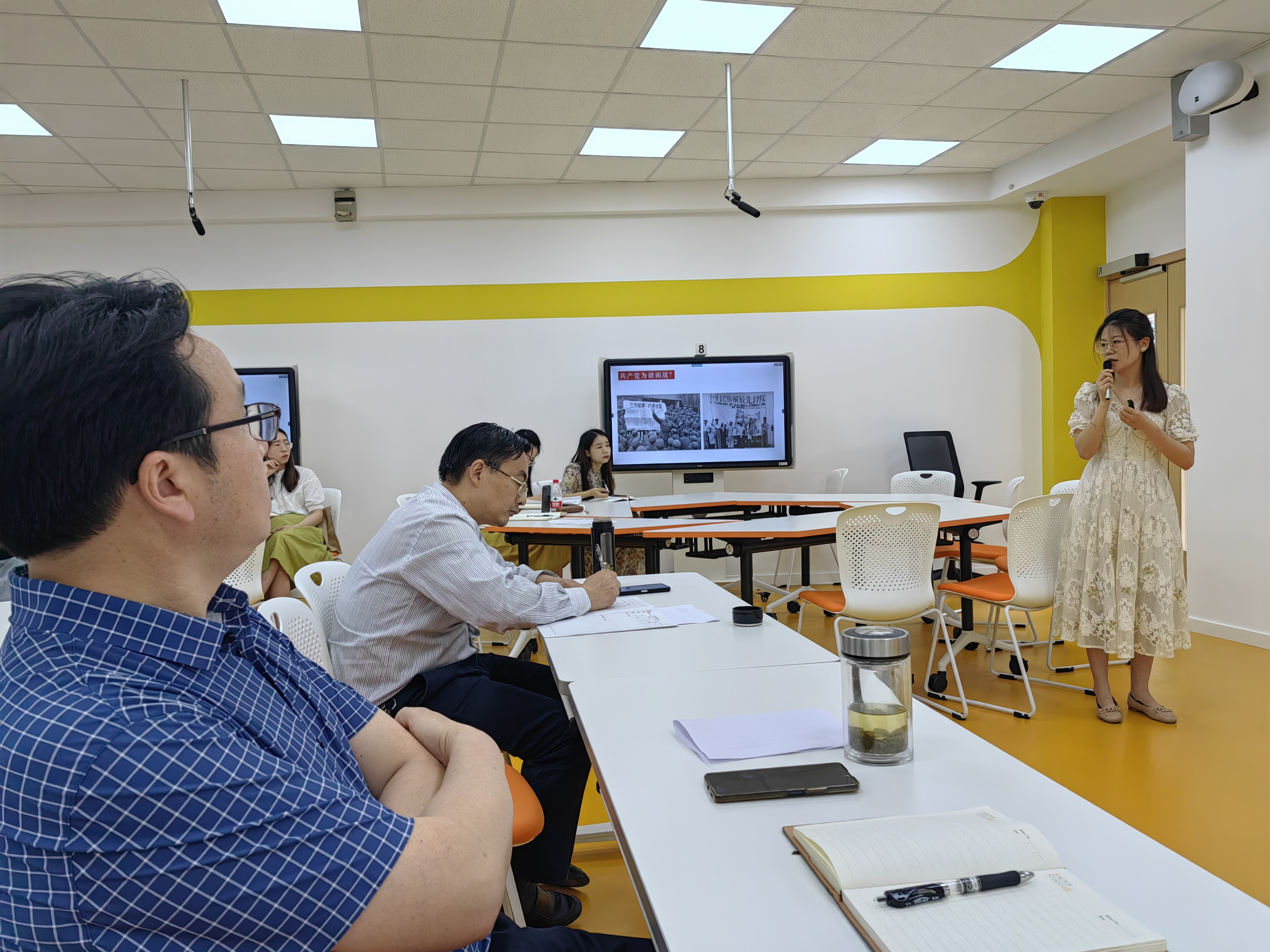 活动第二阶段,学院教师孔凡霞从担任的《中国近现代史纲要》课程中选择一节内容,临场给大家上了20分钟的竞赛观摩示范课。董承婷结合自身实际,给予针对性的点评,并提出一些建设性的意见。点评内容独到而精辟,既帮助了孔凡霞教学竞赛能力的提升,又为在场教师对标对表检验所上课程的差距,激发大家不断反思、不断改进教学方法。随后,针对在场教师提出的平常教学中遇到的难题、竞赛中的疑惑,董承婷结合自身教学、竞赛的经验给予耐心的解答。