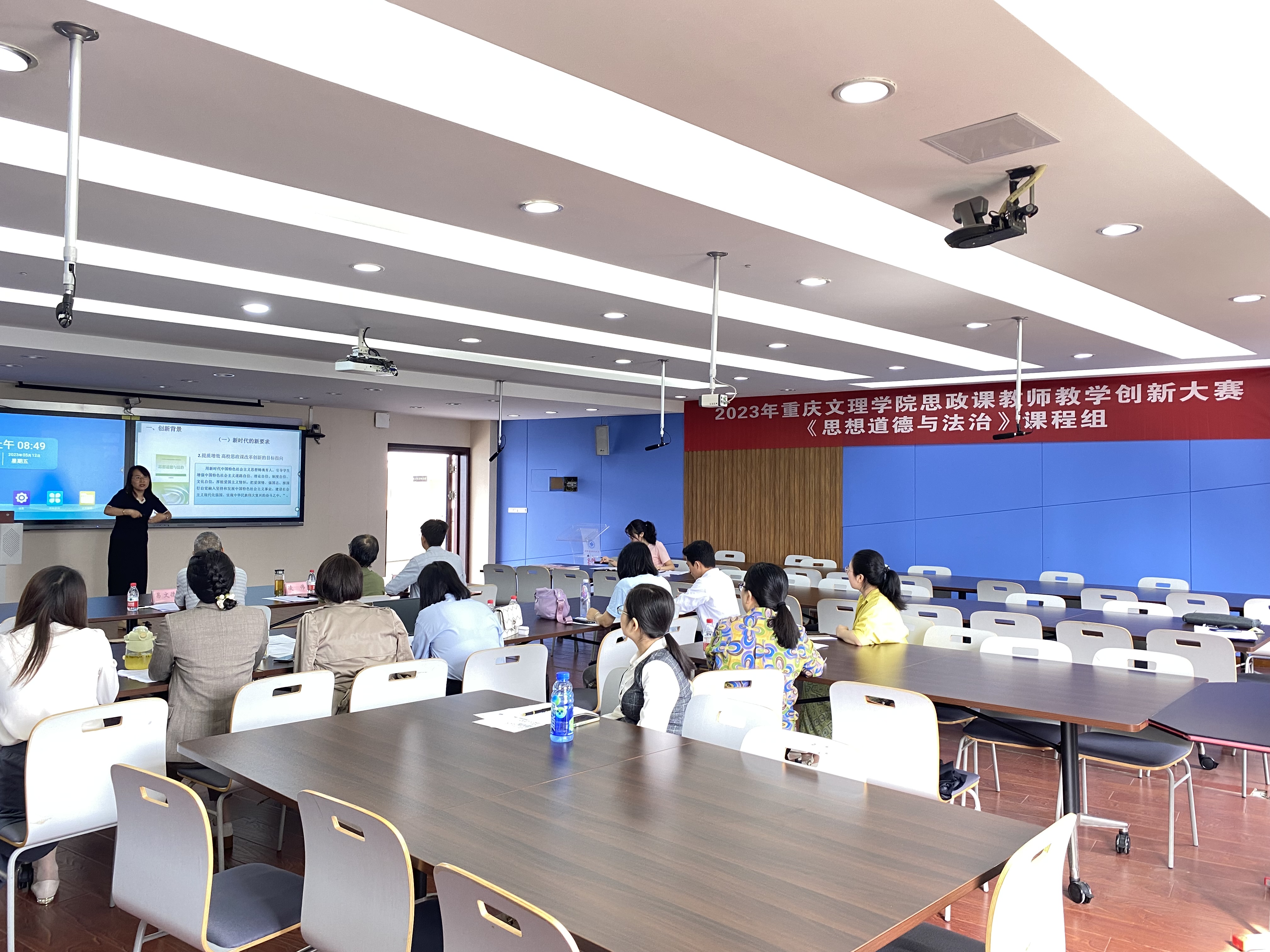 公司围绕主题教育“学理论、强党性、重实践、建新功”总体要求,明确要求参赛教师在教学设计、教学创新报告设计、讲说课程的过程中把党的二十大精神和习近平新时代中国特色社会主义思想融入其中。全体参赛教师聚焦思政课教学实践的真实问题,围绕思政课教学理念的更新、课程内容的革新、教学方法的创新、教学环境的创设、教学评价的改革等方面撰写了教学创新成果报告,并现场进行了15分钟的教学创新设计汇报。评委专家按照解决教学问题的创新思路、现代信息技术的应用、教学过程与方法的革新、教学考评与反馈的创新、教学创新成果的应用价值等标准进行评选。
