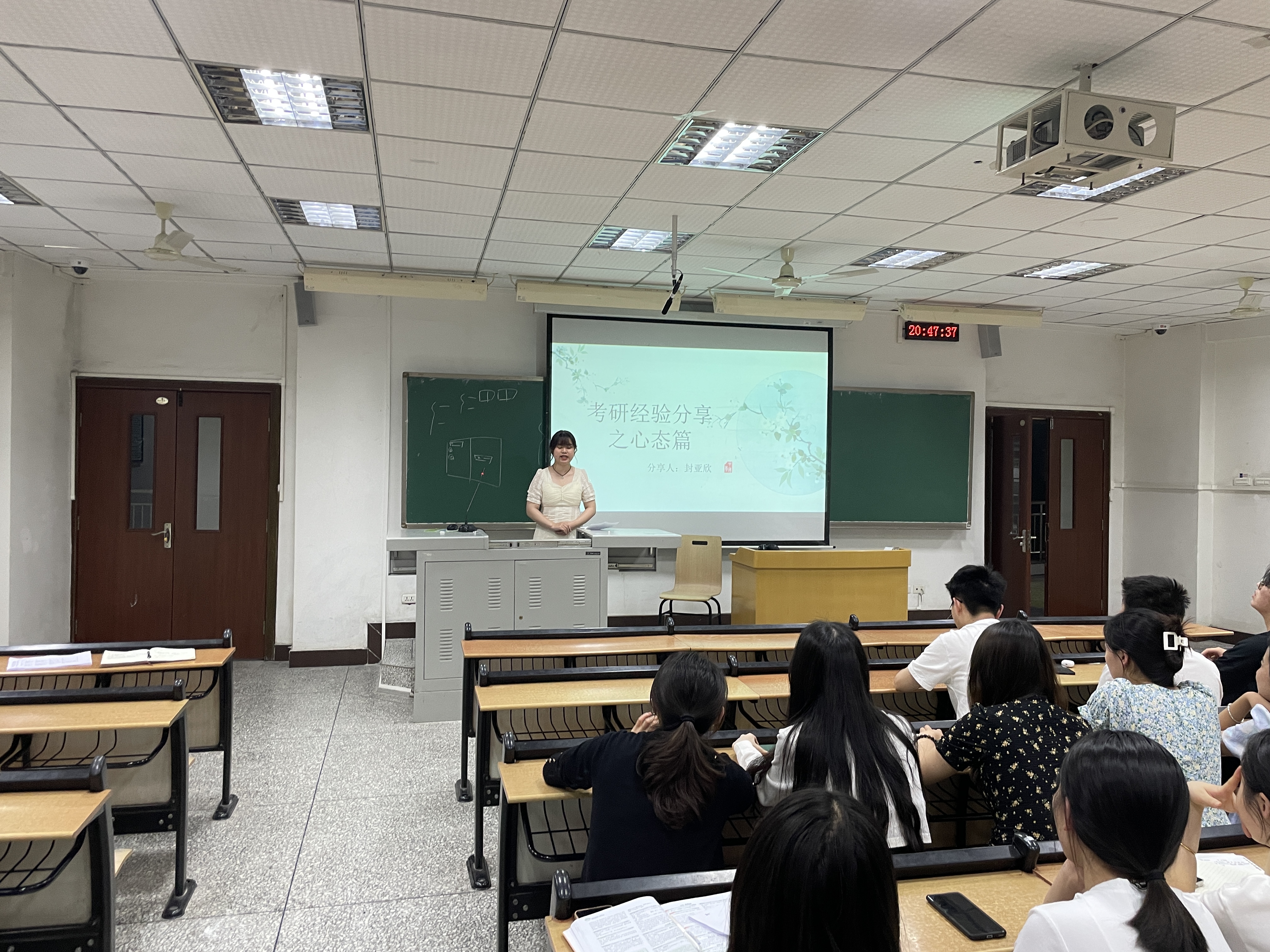 为更好的帮助2020级员工尽早进行考研规划,有效开展课程复习。2023年5月14日晚6:50在知津楼D205开展考研经验分享交流会,学工办主任李华夏、2020级思想政治教育专业全体员工参会,万玉兰、余亨利、封亚欣三位2019级同学做了备考经验分享。