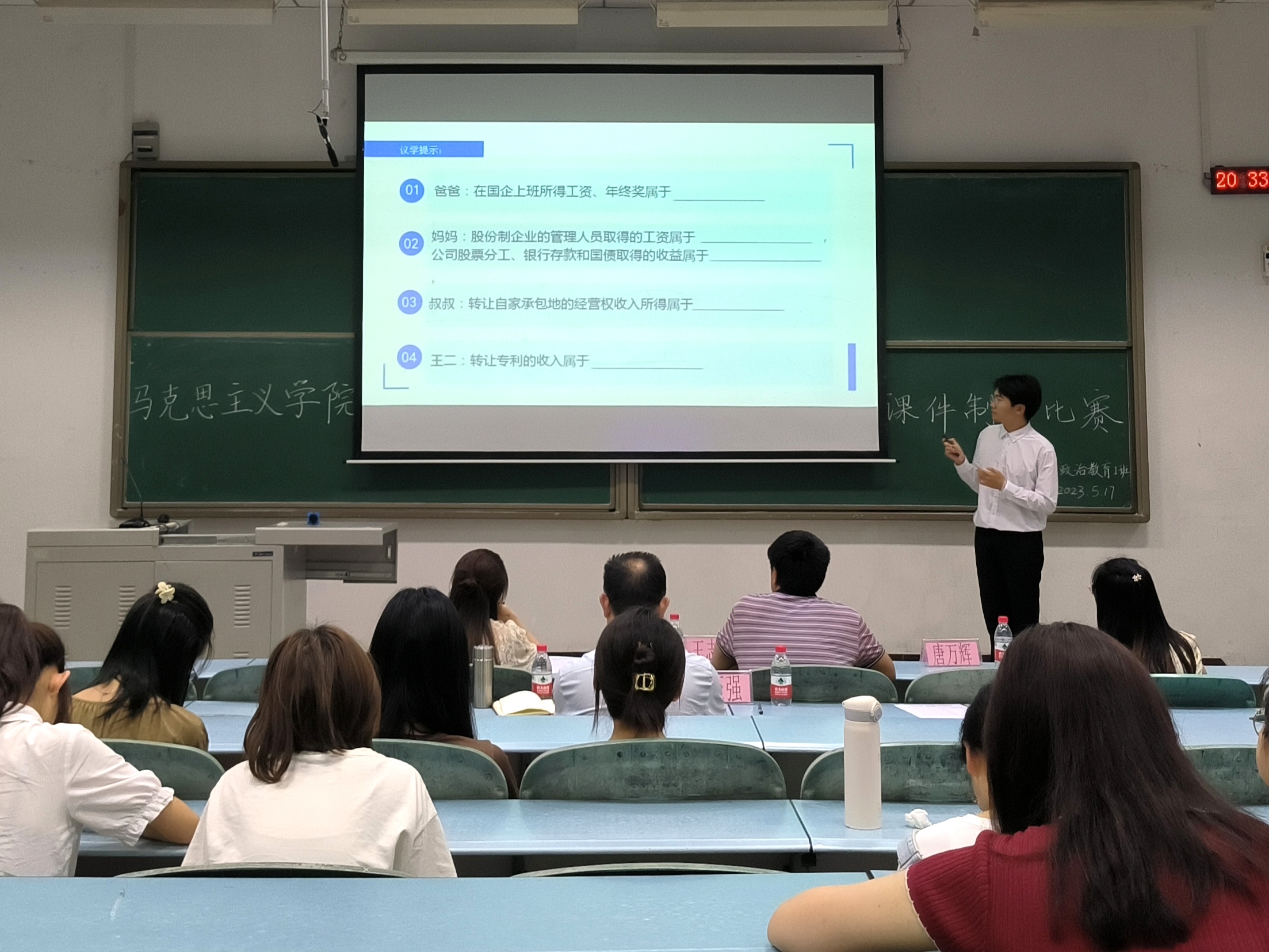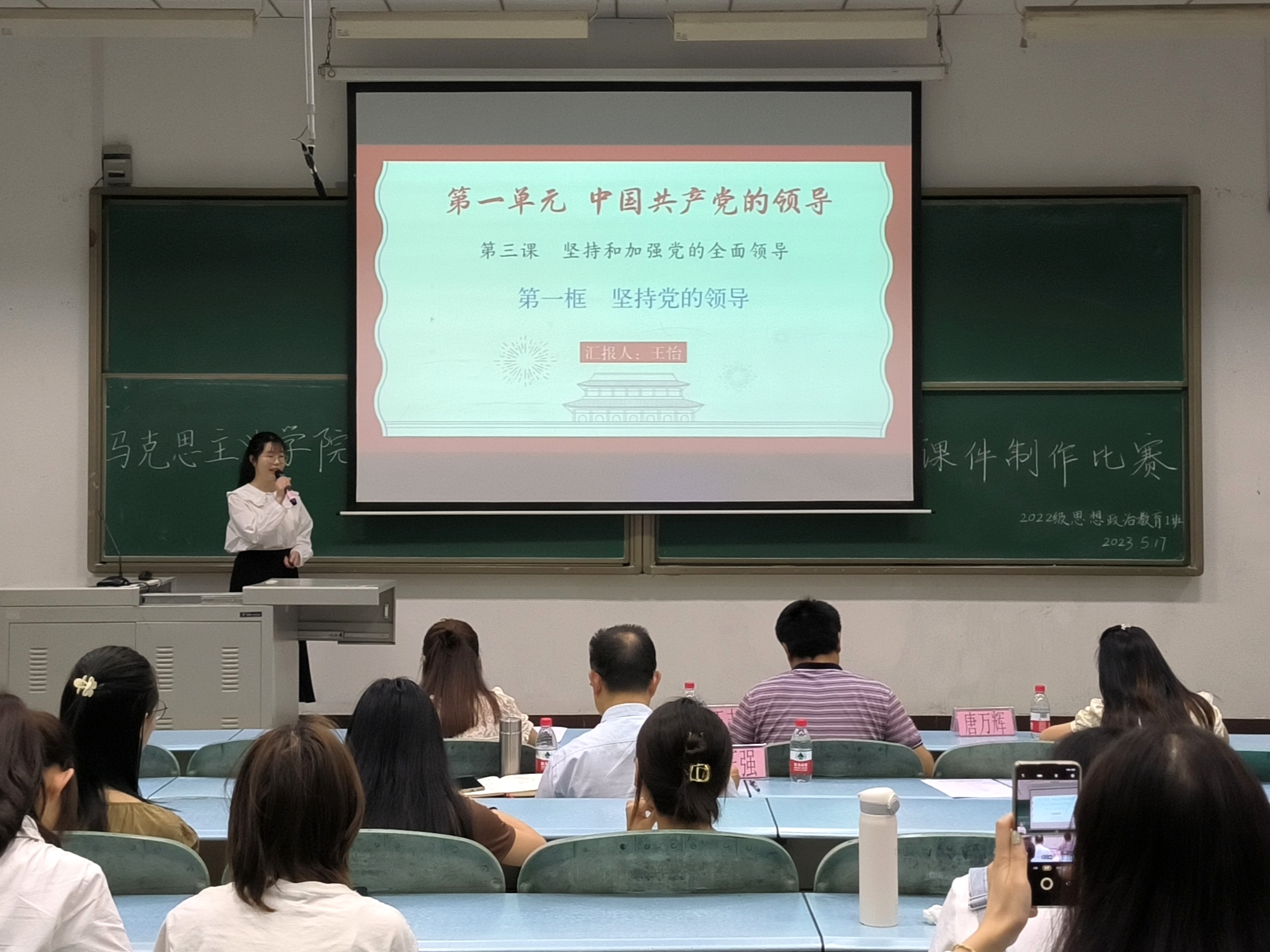 为提高j9九游会思想政治教育专业员工的专业技能,展示教学改革的新成果,在前期初赛评选基础上,5月17日晚,学院在红河A区知津楼笫十阶梯教室举行了2022级员工课件制作竞赛决赛。j9九游会党总支书记杨正强、学工办主任李华夏出席本次活动,教研室负责人王志刚、孔凡霞、唐万辉三位教师担任了决赛评委。