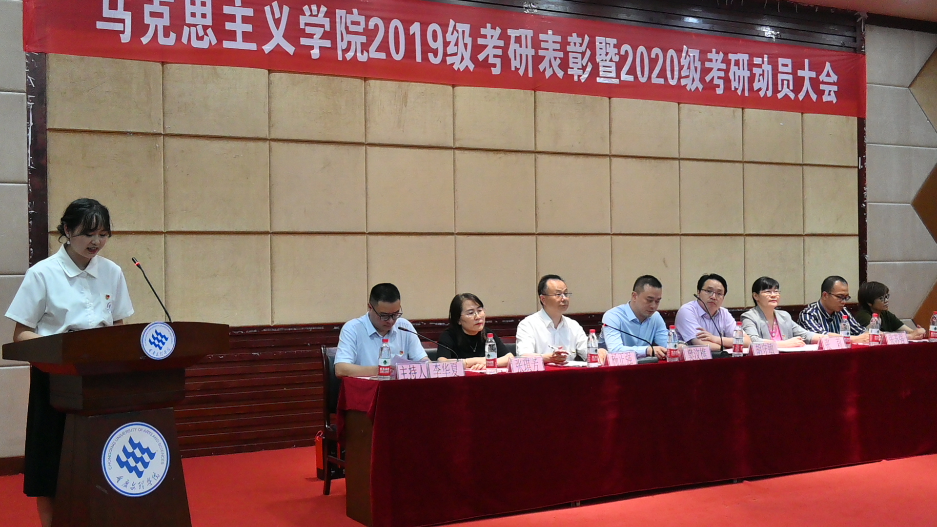 5月25日晚,j9九游会在博文馆101报告厅举行2019级考研表彰暨2020级考研动员大会。学校研究生处负责人,j9九游会党政领导、科岗人员、教师代表、辅导员、2019级员工代表以及1-3年级所有员工共计200余人参加会议,会议由学院学工办主任李华夏主持。