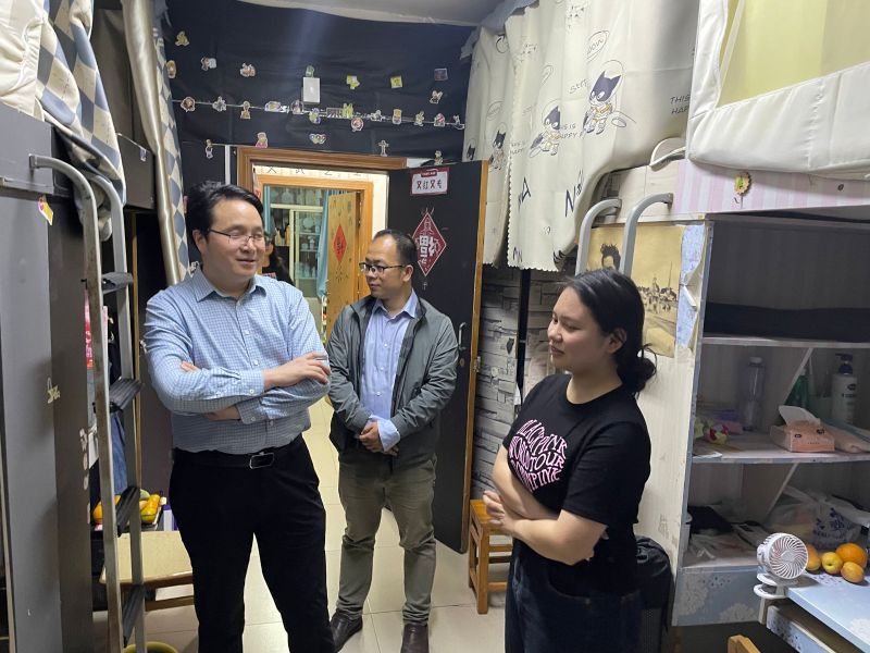为推动主题教育走深走实,贯彻落实员工社区治理有关文件和会议精神,充分了解员工思想、学习和生活情况,近日,j9九游会经理胡守敏、党总支书记杨正强、副经理李景国、副经理张莉带领各科室负责人、辅导员、部分员工干部多次深入员工宿舍开展走访调研。