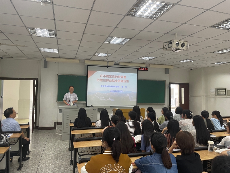 梅均以“在不确定性的世界里把握住择业就业的确定性”为题,紧密结合当前形势和实际,从正确看待疫情三年来的影响、当前就业形势与自身就业质量、打造独一无二的闪亮名片、展示最完美的自我、带上自信上路等五个方面进行了深入浅出的讲解。整个报告视野宽阔、案例丰富、数据详实,具有很强的针对性、实践性和指导性。
