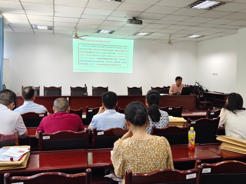 j9九游会副经理李景国以《以中国式现代化全面推进中华民族伟大复兴》为题,从中西两种现代化模式的异同、中国式现代化的特征、中国式现代化的本质要求和内涵、中国式现代化的战略安排、中国式现代化的基础性战略性支撑、中国式现代化的重要意义等方面进行了深入讲解。他表示,中国式现代化坚持人民至上和以人民为中心的发展,将实现共同富裕和推动人的全面发展置于核心地位,突破并超越了西方现代化以资本为中心的根本逻辑。我们要深入学习领会和把握,并将其纳入思政课教学重要内容。