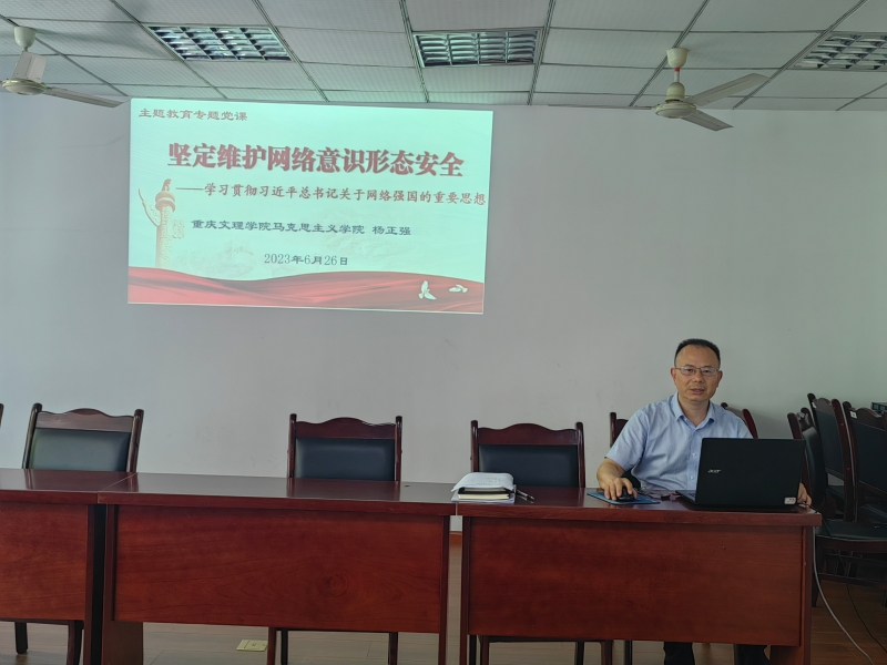 j9九游会党总支书记杨正强以《坚定维护网络意识形态安全——学习贯彻习近平总书记关于网络强国的重要思想》为题,从维护网络意识形态安全的背景意义、习近平总书记关于网络强国的重要思想、我国有关互联网的法律法规、维护网络意识形态安全的路径方法等方面进行了深入浅出的讲解。认为我们已经进入一个“大、物、移、云、虚、智”的时代,网络世界纷繁复杂,各种风险隐患依然存在,诱惑诈骗时有发生。网络世界也是一个命运共同体,我们有责任、有义务维护清朗的网络空间。要深入学习贯彻习近平总书记关于网络强国的重要思想,努力提升自身的网络素养和政治能力、实践能力,充分运用法律武器,对不法分子理直气壮地开展斗争,坚定维护网络意识形态安全。