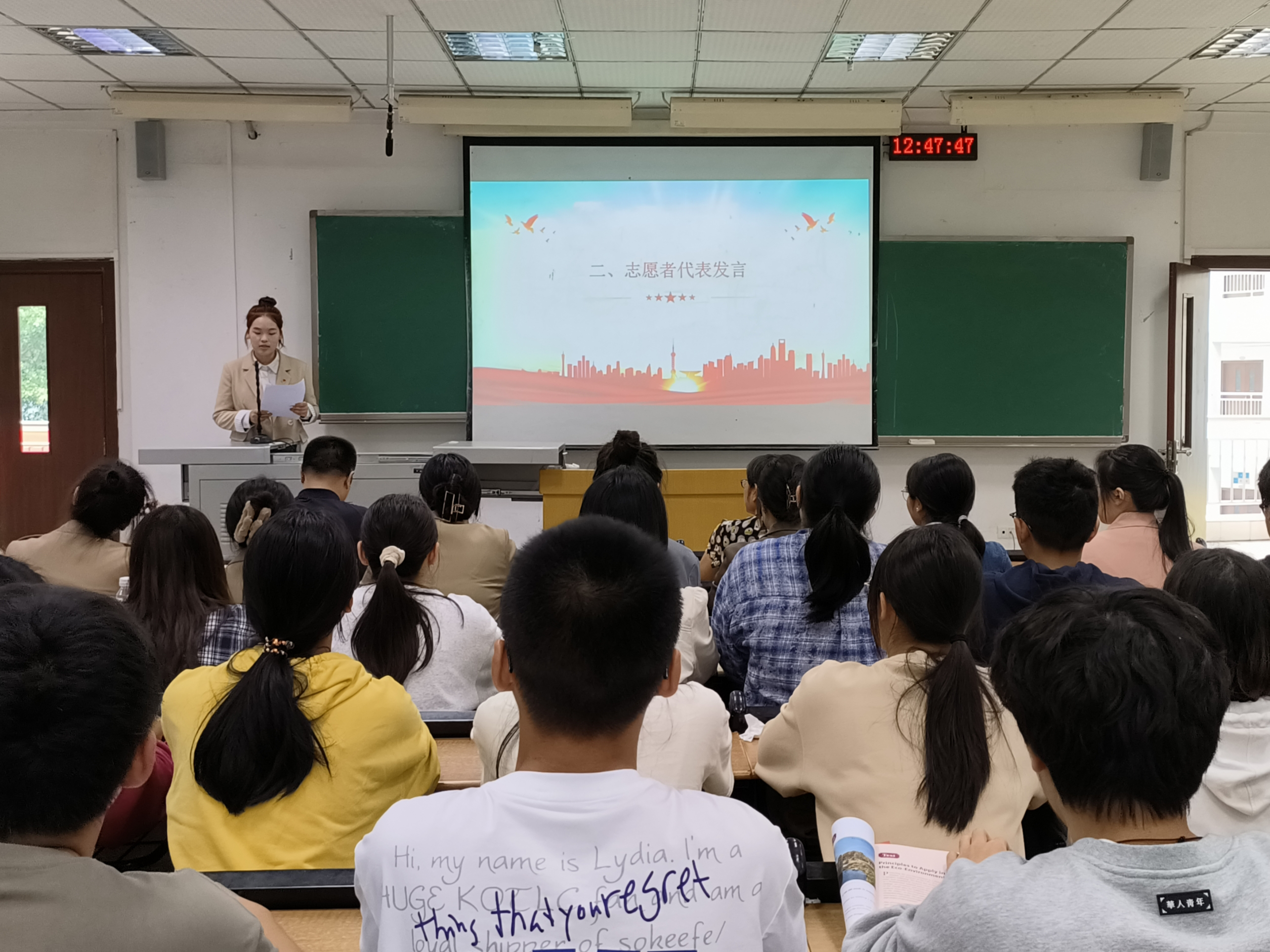 志愿者代表刘佳表达了对未来工作的期望,部门负责人代表韩文俊总结了过去的工作,并代表各部门负责人作出工作上的承诺。主席团成员代表顾佳提出了三点工作设想:一是整合经验与资源,对工作内容负责;二是创新模式与方法,对团学组织负责;三是根植服务与实践,对身边同学负责。