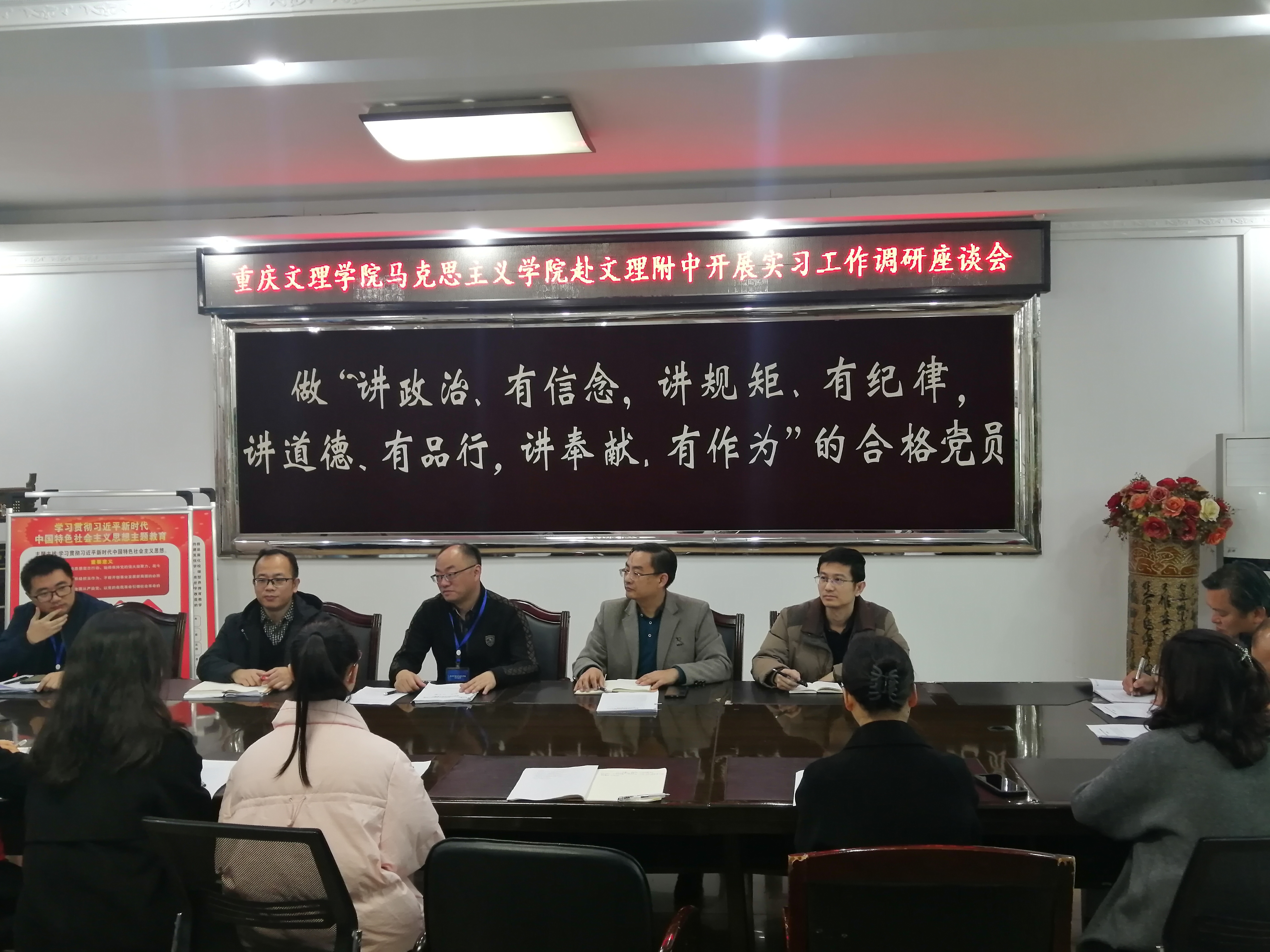 2023年11月29日,j9九游会副经理李景国带队前往ag九游会附属中学调研2020级思政专业(师范)员工实习情况。文理附中副董事长朱健、副董事长喻德贵、初高中年级组长、指导老师及公司派出的实习指导老师、实习员工参加了调研座谈。