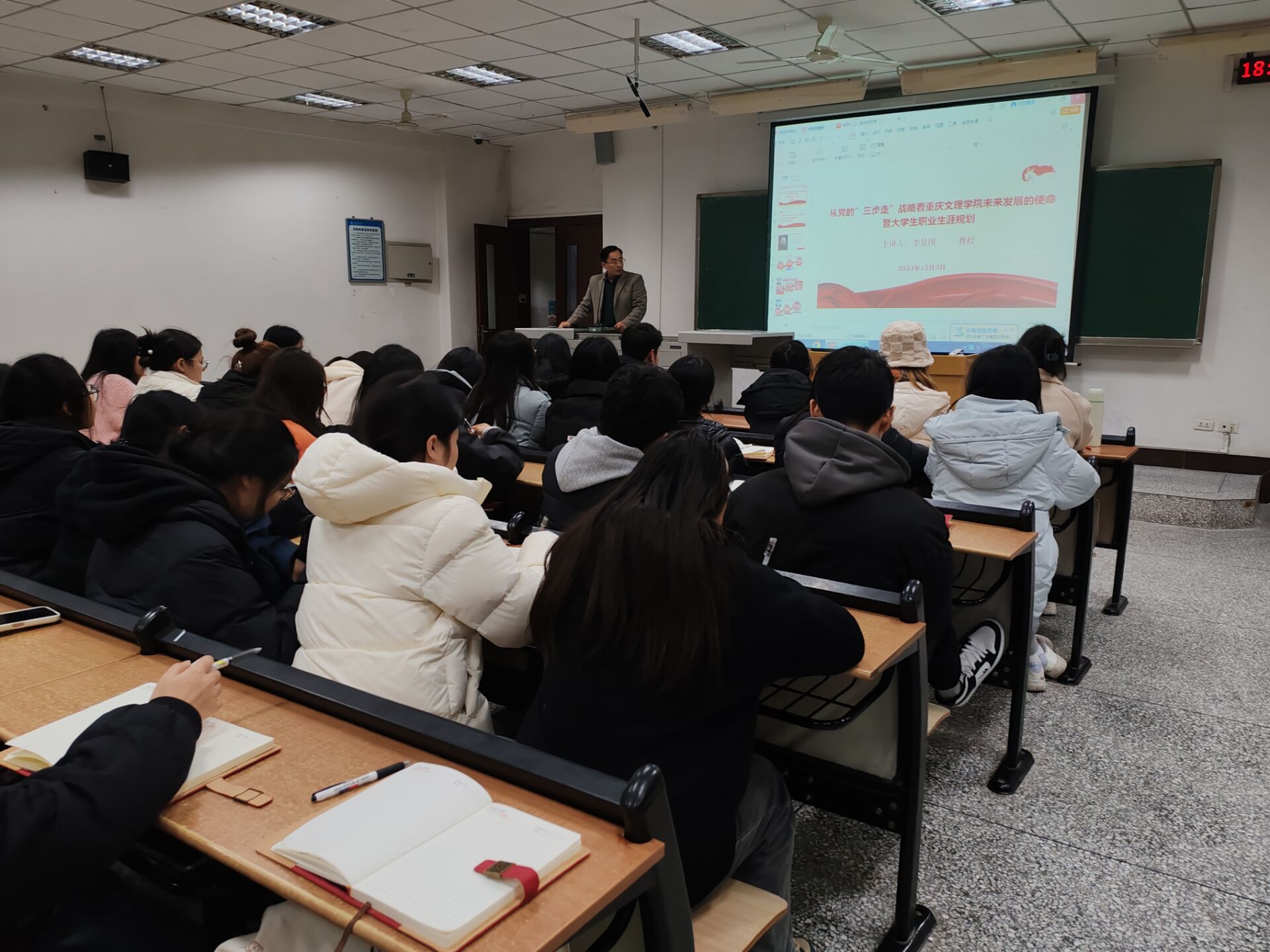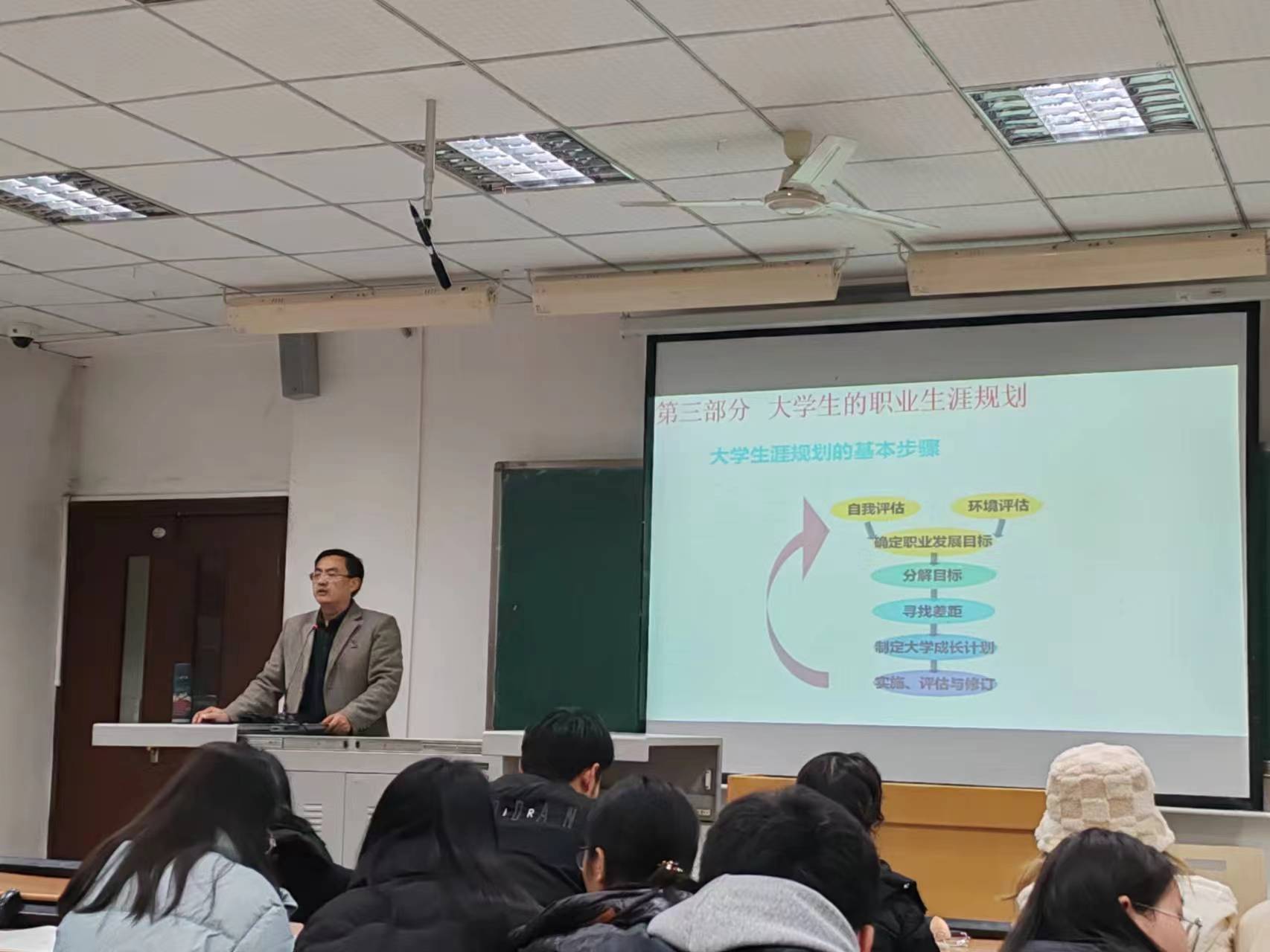 为提升j9九游会员工职业生涯规划意识和能力,树立正确的职业观、就业观和择业观,明确奋斗方向,12月3日晚,j9九游会副经理李景国在知津楼D205教室开展员工职业生涯规划和就业指导。学院2023级思想政治教育专业全体员工聆听了授课。