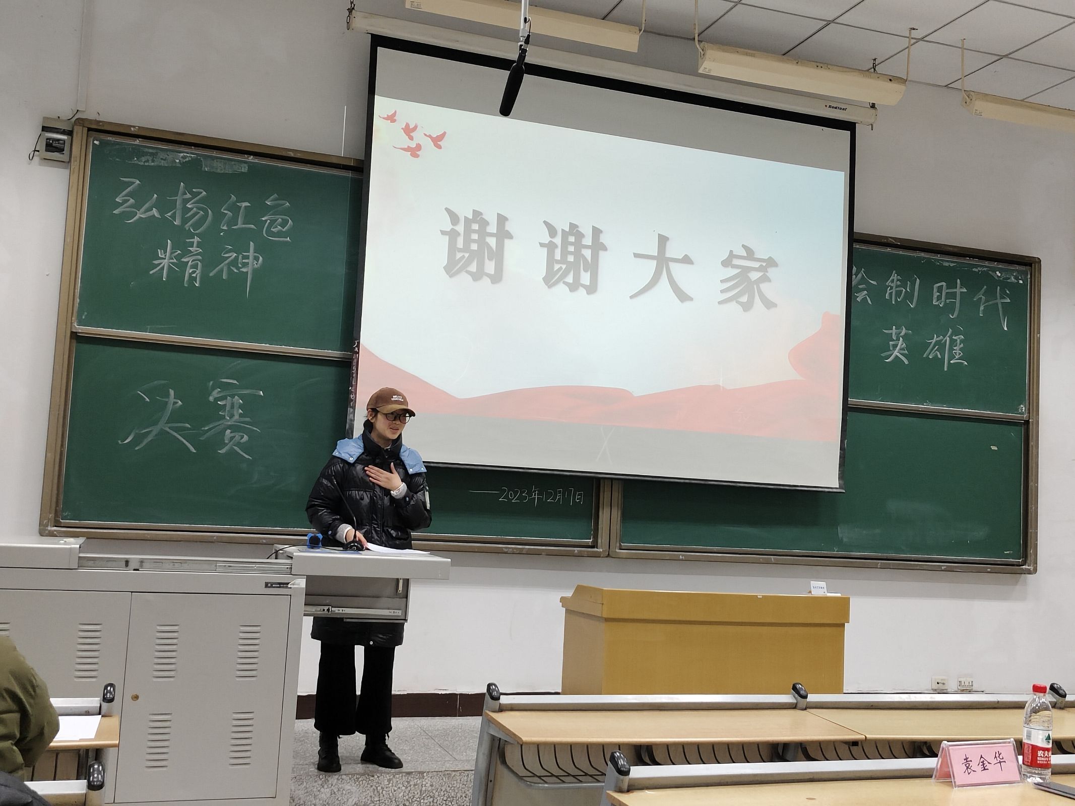 为加深老员工对红色文化和红色精神的理解,掌握海报制作技术,12月17日晚,ag九游会清澈蓝天社区在知津楼七阶成功举办“弘扬红色精神,绘制时代英雄”海报展示决赛。校员工会主席陈蕾宇、教育学院团总支员工副书记袁金华、经济管理学院青年志愿者服务队主席唐新明担任评委。